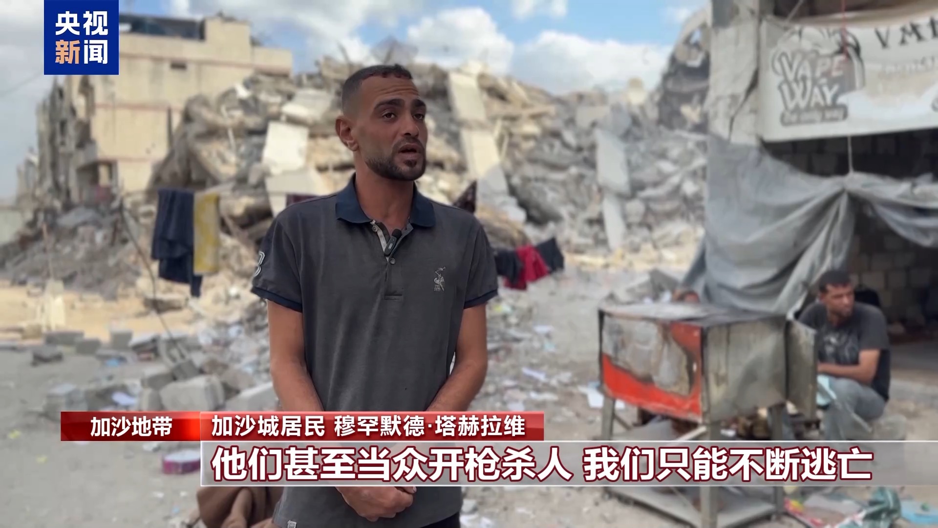 加沙城居民 马哈茂德·巴克尔:我已经搬了十多次,现在实在走不动了。以军离我们只有700米,我们走不了,人很多。我们没有地方住,也没有钱。我们经常会遭到炮击,我自己也是从废墟里爬出来的,至今都不敢相信自己还活着。